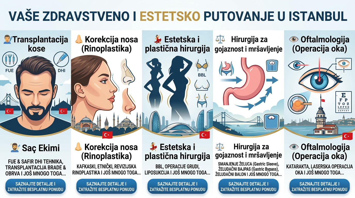 Odricanje od medicinske odgovornosti: Sadržaj na ovoj stranici služi isključivo u informativne svrhe i ne zamenjuje savet lekara. Sve medicinske operacije sprovode direktno zdravstvene ustanove i lekari specijalisti odobreni od strane Ministarstva zdravlja Republike Turske. Ne daje se garancija za konačne rezultate u vezi sa medicinskim tretmanima.